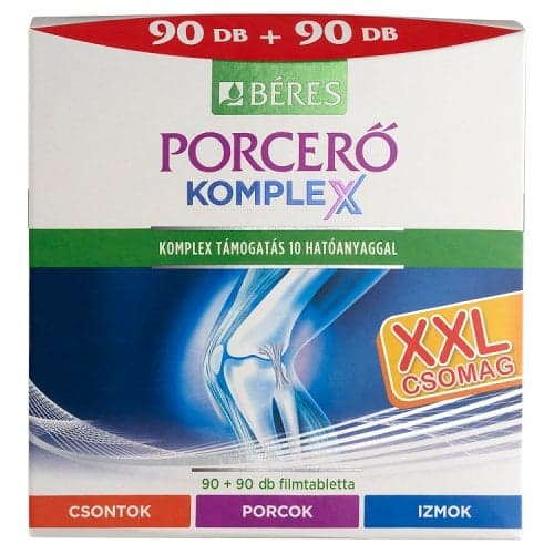 Béres Porcerő KOMPLEX filmtabletta étrend-kiegészítő készítmény C-vitaminnal, glükozamin-szulfáttal, kalciummal, magnéziummal, valamint további vitaminokkal és ásványi anyagokkal.