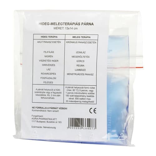 Az Agria Hideg-Melegterápiás párna többek között fejfájás, migrén, izomláz, rovarcsípésre alkalmazható.