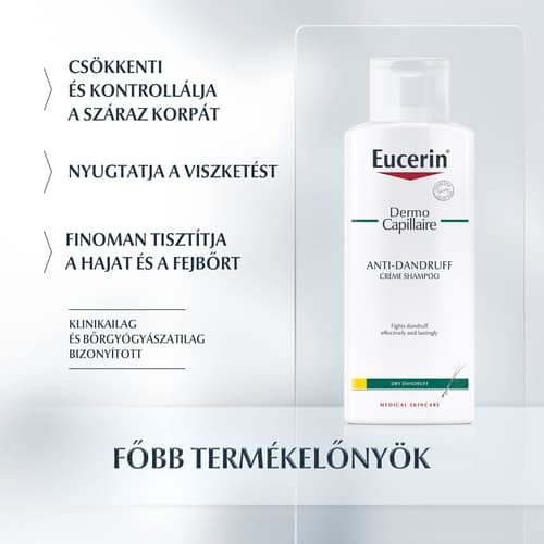 Fedezze fel az Eucerin DermoCapillaire korpásodás elleni sampont, mely kifejezetten száraz korpára lett kifejlesztve. Ez a gyengéd, 250 ml-es sampon hatékonyan csökkenti a száraz korpát és enyhíti a viszketést, miközben kíméletesen tisztítja a fejbőrt és a hajat. Ideális választás mindazoknak, akik száraz, hámló fejbőrrel küzdenek, speciális megoldást kínálva a komfort és a haj egészségének helyreállítására. Bízzon az Eucerin szakértelmében a bőrgyógyászati ápolásban!