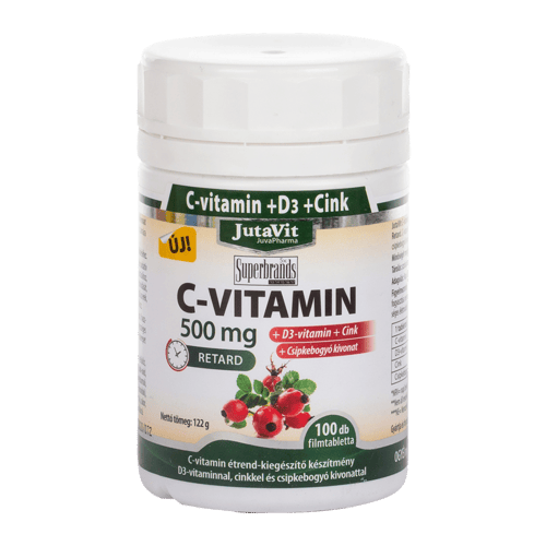 JutaVit C-vitamin 500 mg Csipkebogyó + D3 + Cink retard filmtabletta 100 db