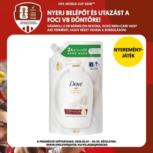 Az 500 ml-s utántöltő 80%-kal kevesebb műanyag felhasználásával készül a 250 ml Dove folyékony krémszappan pumpás kiszereléshez képest. Ráadásul 99%-ban biológialag lebomló a krémszappan formulája, így nemcsak a bőröddel, hanem a környezettel is törődik.