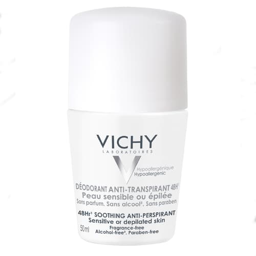 Vichy dezodor golyó érzékeny, epilált bőrre. Ez a 50 ml-es, illatmentes roll-on dezodor hosszan tartó izzadásgátló hatást biztosít, kifejezetten érzékeny bőrre fejlesztve. Ideális választás, ha megbízható védelmet keresel irritáció nélkül, és frissességet szeretnél egész napra.