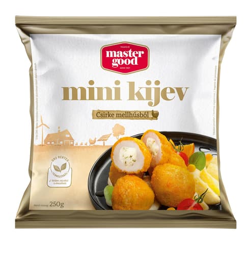 Ez a termék biztos siker ahhoz, hogy legközelebb is Nálad jöjjön össze egy baráti társaság. Kívül aranybarna ropogós panír, belül pedig omlós csirkemellhús és petrezselymes krémes sajttöltelék. Csábító íz és illat ami jellemzi a Mini Kijev golyócskákat. A termékek gyártása során felhasznált hús GMO-mentes termelésben felhasználható takarmánnyal etetett állattól származik.