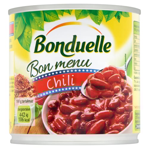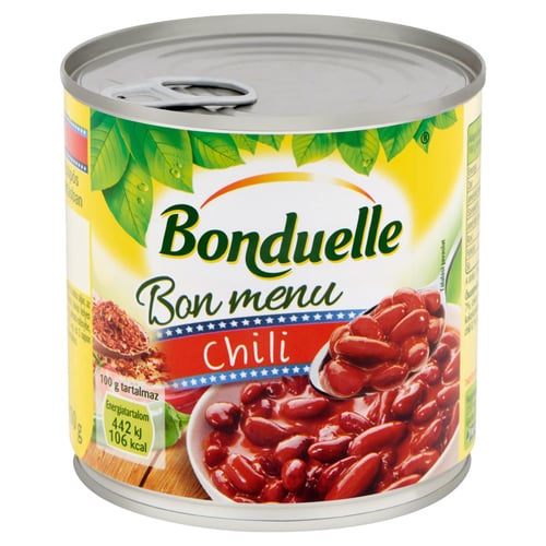 Bon Menu chilis termék a vörösbab és a csípős mexikói mártás tökéletes párosítása. Az 5 tagú Bon Menu termékcsalád legpikánsabb és legizgalmasabb tagja. Hidegen, melegen, vagy akár önmagában is fogyasztható, húsok mellé pedig tökéletes választás köretként is. A vörösbab számos vonásának köszönhetően igazán laktató, mégis egészséges étel. Tartósítószert nem tartalmaz.