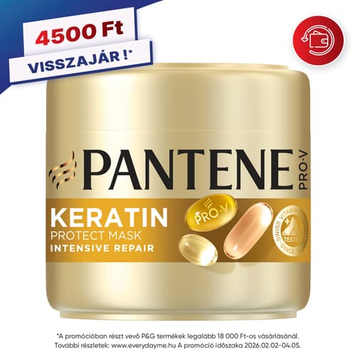 A Swiss Vitamin Institute által tesztelt, mikrotápanyagokkal dúsított Pantene Pro-V Intensive Repair Keratin Reconstruct intenzív, regeneráló hajpakolás már az első használat alkalmával segít helyreállítani a haj 6 hónap alatt szerzett károsodásait. A Pantene Pro-V gazdag formulája a hajrostokba hatolva segít megerősíteni és táplálni az összes hajszálat, a hajtőtől egészen a hajvégekig. (A hajformázás okozta károsodások helyreállítása/védelem a hajformázás okozta káros hatásokkal szemben.)