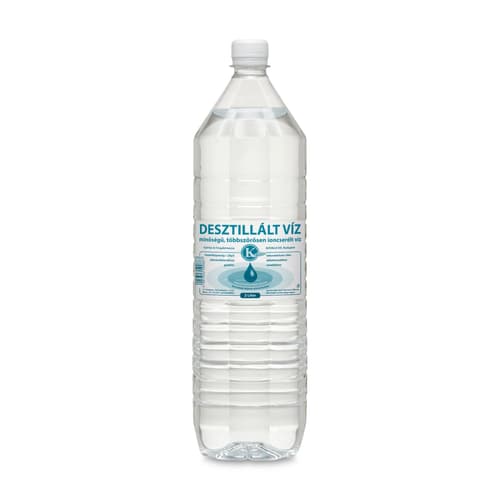 Ioncserélt víz. Alkalmas gőzölős vasaláshoz, párásításhoz, vagy akár autók akkumulátorában történő felhasználásra.