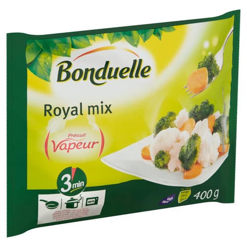 Az egyedi gyártási technológiának köszönhetően a Royal mix megőrzi a zöldségek természetes színét és állagát, ropogósságát, valamint tápanyagtartalmát. A zöldségeket gőzben előpároltuk, így egy adag elkészítése csupán 3 percet vesz igénybe, akár serpenyőben, akár mikrohullámú sütőben, akár fazékban készítjük el. Ideális húsok mellé köretként, de levesek elkészítéséhez is ajánljuk. Tartósítószert nem tartalmaz.