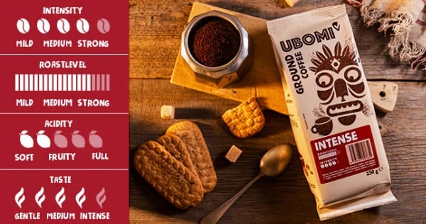UBOMI Intense őrölt kávé, lassú pörkölés