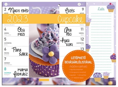 Lizzy Card, Hűtőmágneses naptár 2 heti, jegyzettömbbel 2023 Cupcake1 Ez a termék már nincs az ajánlatunkban.Származási ország:az aktuális kínálat szerintpontos információért vedd fel a kapcsolatot az ügyfélszolgálattal