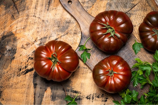 Marmande fajta paradicsom, jellegzetes bordázott formájú, vonzó barna színű, mélyzöld gallérral. Egyedi és ellenállhatatlan az íze, az édesség és a sav tökéletes egyensúlyának és a magas vitaminkoncentrációnak köszönhetően. Fedezd fel verhetetlenül ropogós textúráját és egyedi ízét!