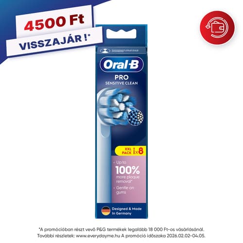 Az Oral-B elektromos fogkefékhez készült prémium minőségű Sensitive Clean pótfej ultravékony sörtéi az általános sörtékkel kombinálva gyengédek a fogínyhez, de kíméletlenek a lepedékkel. A Sensitive Clean fogkefefej akár 100%-kal több lepedéket távolít el, és 100%-kal csökkenti a fogínygyulladást az Oral-B manuális fogkefékhez képest. A lekerekített végű, ultravékony sörtékkel rendelkező Sensitive Clean ideális mindazok számára, akiknek érzékeny a foguk, illetve akik gyengéd, de hatékony fogmosásra vágynak. A Pulsonic & iO kivételével minden Oral-B fogkefemarkolattal használható.
