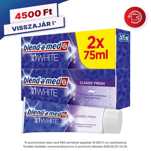 A Blend-a-med 3D White Classic Fresh fogkrém a felületi elszíneződések eltávolításával fehéríti a fogakat, és hosszan tartó frissességet biztosít.