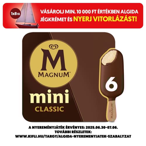 2-2 darab Magnum Vanília, vanília jégkrém tejcsokoládé bevonattal, Magnum Fehér, vanília jégkrém fehércsokoládé bevonattal és Magnum Mandula, vanília jégkrém tejcsokoládéval bevonva, manduladarabkákkal megszórva.