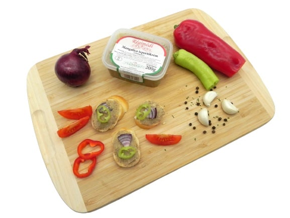 Sült mangalica szalonnából készült tepertőkrém, vöröshagymával, borssal és sóval ízesítve.
