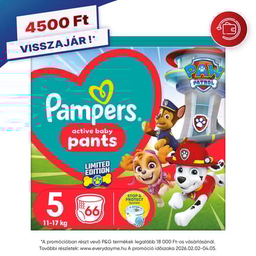 Pampers Active Baby Pants Bugyipelenka Mancs Őrjárat, Méret: 5 (11-17 kg) 66 db