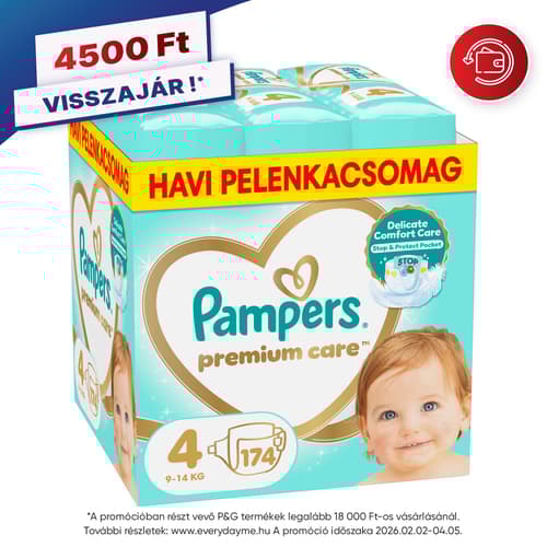 Pampers Premium Care Pelenka, Havi Pelenkacsomag, Méret: 4 (9-14 kg) 174 db