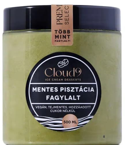 Cloud 9 Fagylalt Mentes Vegán pisztácia sorbet, tejmentes, hozzáadott cukor nélkül, édesítőszerrel