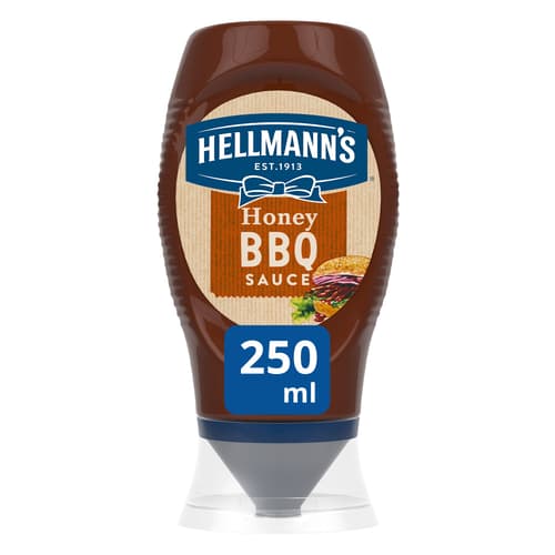Honey barbecue sauce. Today, there are many delicious Hellmann's products available on the market, starting from different types of mayonnaise, through salad dressings to barbecue sauces.