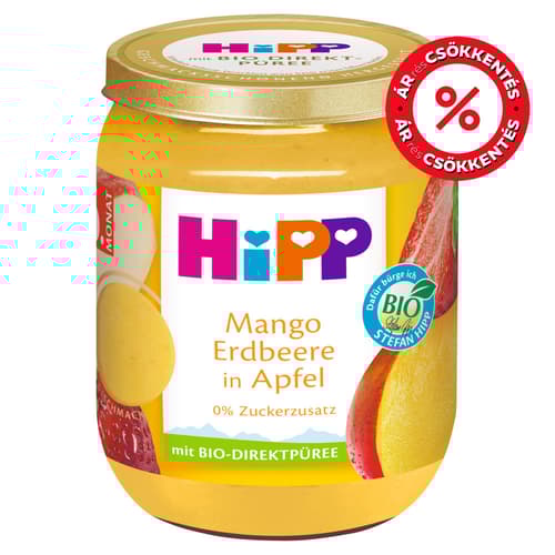 HiPP bio gyümölcskészítmény alma mangóval és eperrel bébidesszert 6 hónapos kortól