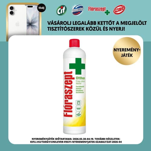 Floraszept fertőtlenítő folyékony tisztítószer friss citrom illattal, 1 literes kiszerelésben, Magyarországról. Aktív klórtartalmának köszönhetően elpusztítja a baktériumok 99,9%-át, így tökéletes higiéniát és tisztaságot biztosít. Kiválóan alkalmas WC-k, fürdőszobák és konyhai felületek fertőtlenítő tisztítására, valamint ruhák fehérítésére.