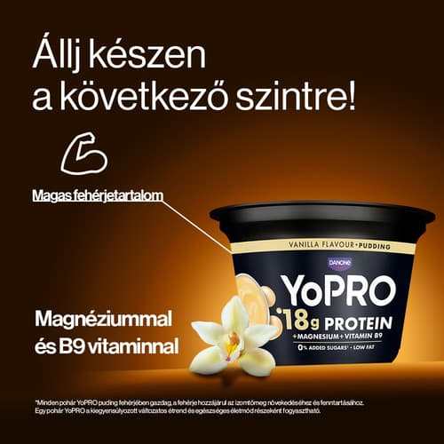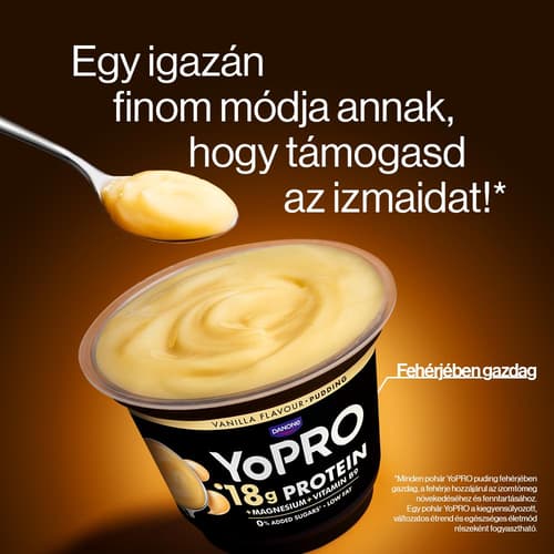 YoPRO vaníliaízű tejdesszert, TELE PROTEINNEL, TELE ÍZZEL.