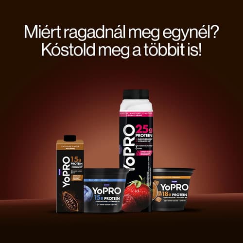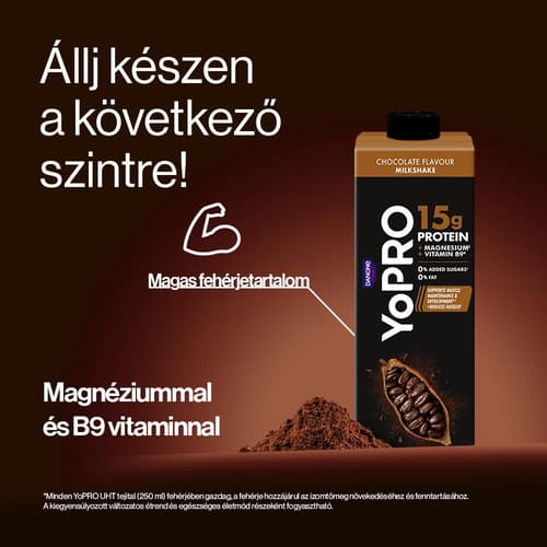 YoPRO Csokoládé ízű UHT tejital, TELE PROTEINNEL, TELE ÍZZEL.