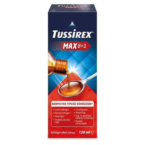 A Tussirex MAX 8in1 szirup a megfázással járó bármilyen típusú köhögés enyhítésére alkalmas. Alkohol, laktóz és gluténmentes, nem tartalmaz gmo-t és mesterséges színezékeket. 1 éves kortól.
