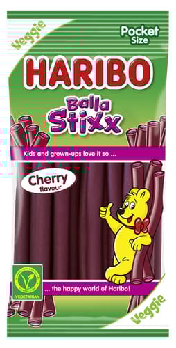 HARIBO Balla Stixx, cseresznyeízű gumicukorka. Haribo kicsiknek és nagyoknak egyaránt!