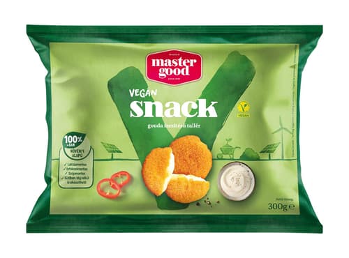 Panírozott, elősütött, gyorsfagyasztott, növényi fehérjéből formázott vegán termék
