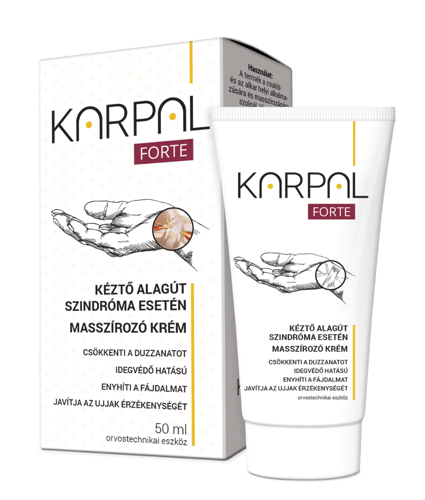 A Karpal Akut Forte egy innovatív orvosi eszköz a kéztőalagút szindróma kezelésére. Csökkenti a kézfájdalmat, javítja az ujjak érzékenységét, erősíti az idegeket és elnyomja a duzzanatot.