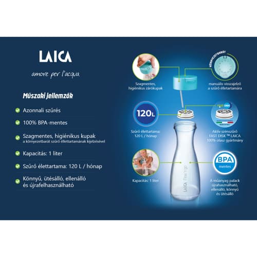 A LAICA legújabb vízszűrő palackjával azonnal tiszta, szűrt vizet tölthetsz a poharadba.