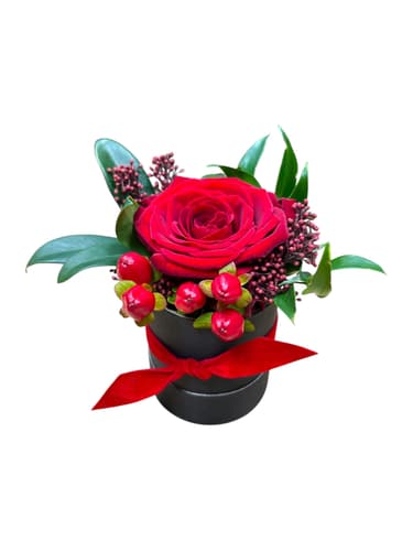 Nusy Flower Fekete virágdoboz vörös rózsával