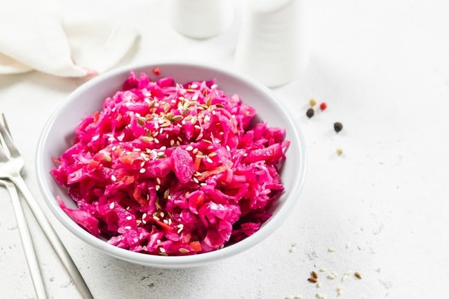 Torma céklával. Magyar termék. A termék zellert és mustármagot is felhasználó üzemben készült.