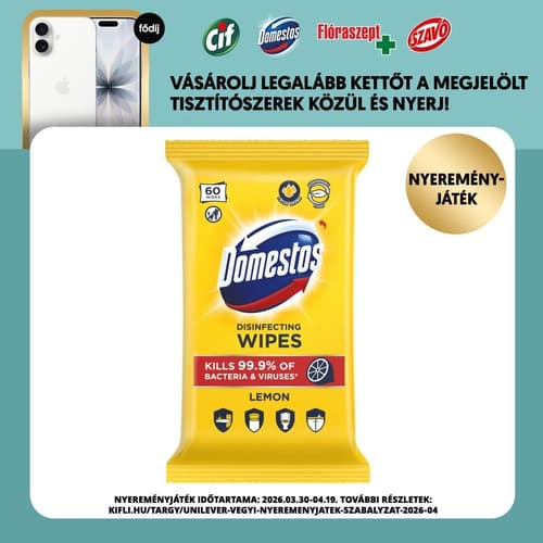 Domestos Lemon fertőtlenítő hatású higiénikus törlőkendő, 60 db