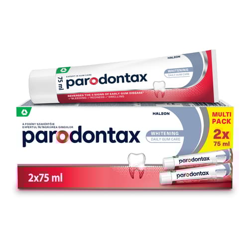 A parodontax Whitening egy mindennapi használatra szánt fluoridos fogkrém, mely klinikailag bizonyítottan segít megelőzni a fogínyvérzést rendszeres, napi kétszeri használat mellett.