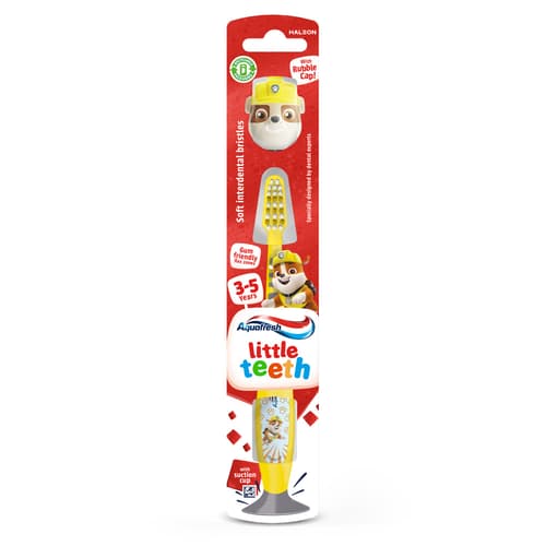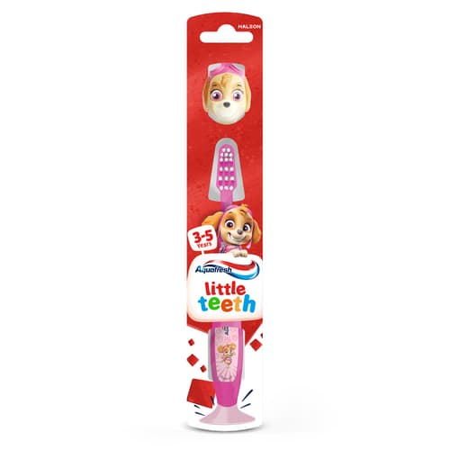 Brushing teeth is fun with the Aquafresh Kids toothbrush, which helps encourage your child to brush their teeth. It has a cheerful animal travel mug and a practical suction cup base.