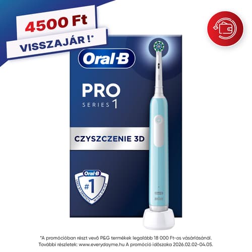 Ismerd meg az Oral-B Pro Series 1 fogkefét, a fogorvosok által világszerte használt fogkefemárka népszerű darabját! A Series 1 elektromos fogkefe professzionális időmérővel rendelkezik, melynek segítségével könnyedén betartható a fogorvosok által ajánlott 2 perces fogmosási idő. A fogkefe 30 másodpercenként arra is figyelmeztet, hogy áttérhet a szájüreg egy újabb körnegyedének a tisztítására. Miközben a fogkefét végigvezeted fogsorodon, az Oral-B különleges, kerek feje elvégzi helyetted a munkát. Akár 100%-kal több lepedéket távolít el, mint az Oral-B manuális fogkefék, így fogínye egészségesebb lesz, mosolyod pedig már a használat első napjától kezdve fehérebben ragyog, mivel a fogkefe eltávolítja a felületi elszíneződéseket. A professzionális időmérővel rendelkező Oral-B Pro Series 1 ajánlott mindazok számára, akik elektromos fogkefére szeretnének váltani.