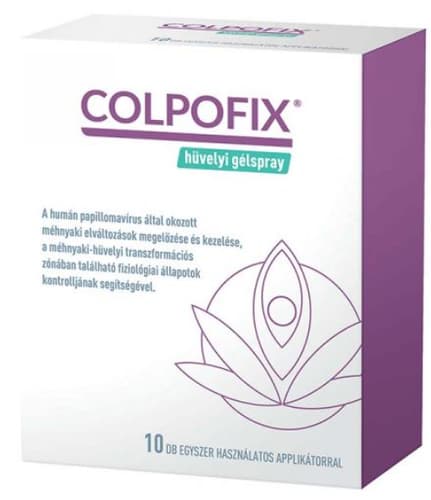 Colpofix hüvely-gélspray, 20 ml-es kiszerelésben. Ez a gél spray hatékonyan alkalmazható a humán papillomavírus (HPV) által okozott méhnyak elváltozások megelőzésére és kezelésére. Fontos segédeszköz a női intim egészség megőrzésében és a megfelelő higiénia fenntartásában. Kényelmesen használható, diszkrét megoldás.