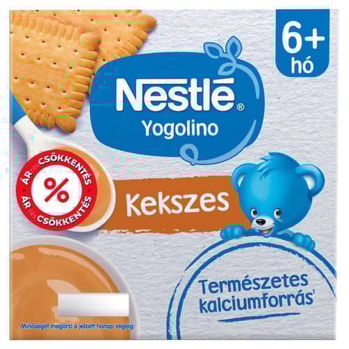 Nestlé Yogolino kekszes babapuding 6-36 hónapos korig természetes kalciumforrás¹ és tartósítószer és mesterséges színezék mentes² ¹A gyermekek csontjainak megfelelő növekedéséhez és fejlődéséhez szükség van kalciumra ² az előírásoknak megfelelően