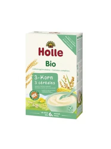 Holle Organic 3-Grain Flake Baby Porridge is recommended for consumption after 6 months of age. It is made from whole grain cereals, without added sugar, eggs and milk, lactose-free, gluten-free product. The ingredients have a natural sugar content, the baby porridge can be prepared easily without cooking.