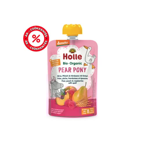 Holle Bio Pear Pony - Tasak körte, őszibarack, málna tönköllyel 8 hónapos kortól, demeter