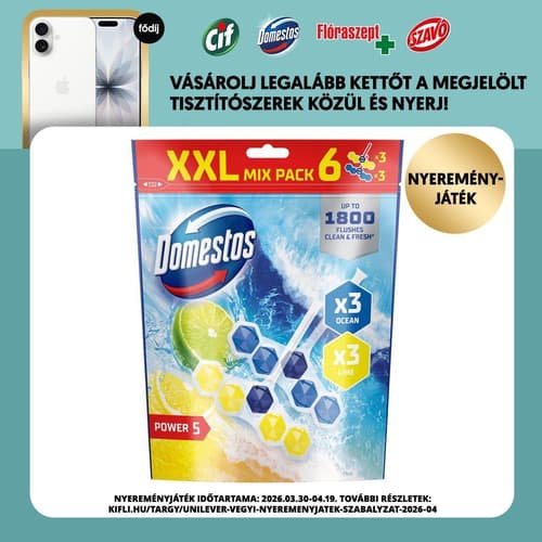 Domestos Power5 WC freshener block mix, featuring refreshing Lime and Ocean scents, is designed to keep your toilet sparkling clean. These powerful blocks tackle dirt, fight limescale, and deliver long-lasting freshness with strong foaming action. Simply hang them on the toilet rim to activate their five benefits: hygiene, enduring fragrance, limescale prevention, robust foam, and brilliant cleanliness. This EU product comes in a convenient 6-piece pack, stored at room temperature.