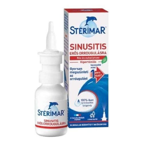 Sterimar Sinusitis is a 100% natural, hypertonic seawater-based nasal spray that relieves nasal congestion.