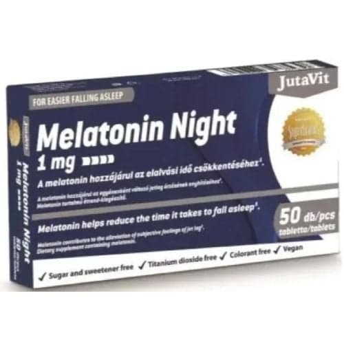 Melatonin contributes to the reduction of the time taken to fall asleep and to the relief of the subjective feeling of jet lag. The challenges of modern life and increased stress can often lead to sleep disorders, which in the long term negatively affect our quality of life. Restful sleep is essential for maintaining physical and mental health, so it is important to find an appropriate solution to sleep problems. JutaVit Melatonin Night 1 mg tablet provides an effective and natural way to support the process of falling asleep and to promote quality rest.