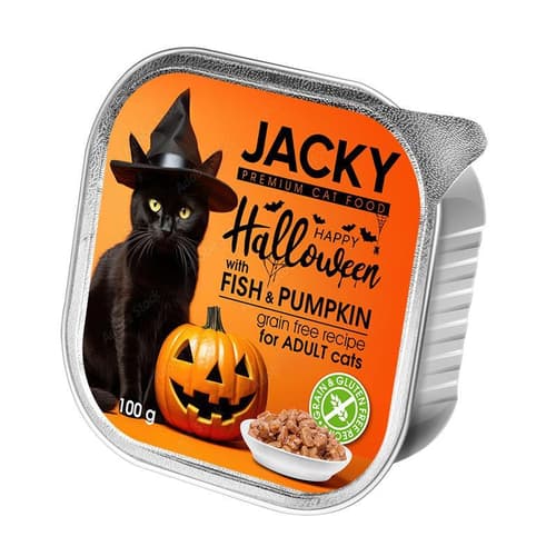 Jacky Halloween alutálkás pástétom macskaeledel, hal-sütőtök