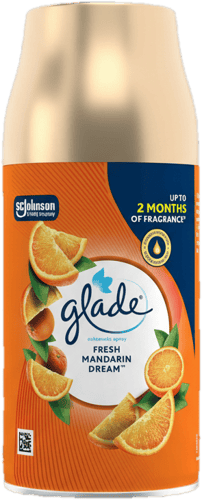 Place the refill into the Glade automatic device and enjoy the citrusy and refreshing scent of Fresh Mandarin Dream every day.