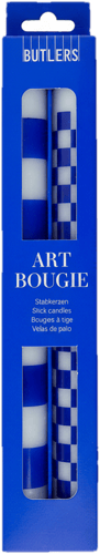 ART BOUGIE 2er Set Stabk. Checker blau
