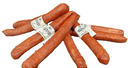 Guaranteed minimum durability from the time of delivery: 11 days.If the minimum durability is lower, please contact us and ask for a refund. Not applicable to items from the Save the Food section.mangalica apróhús 76,4 %, sertés apróhús 19,2 %, fűszerpaprika, étkezési só, fokhagyma granulátum, fűszerek, sertésbél.