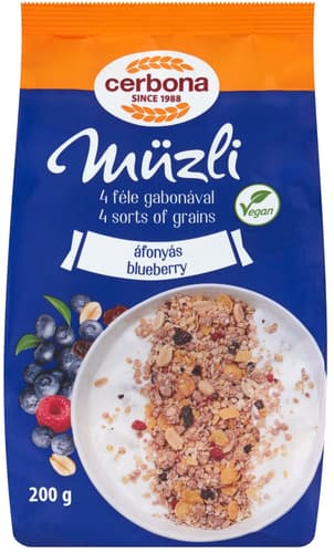 Cerbona müzli - áfonyás200 gThis product is no longer available.Country: according to the current offerplease contact customer support for the exact information