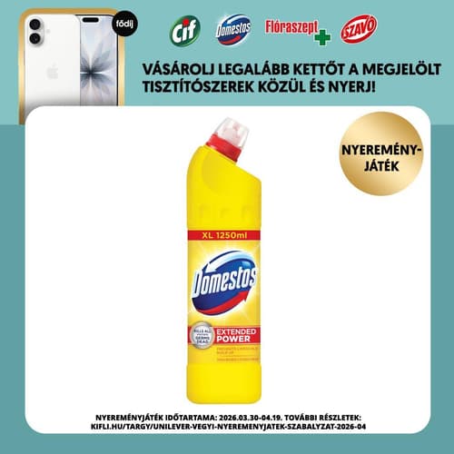 Domestos Extended Power Citrus Fresh is a powerful, thick disinfectant cleaner that effectively combats bacteria, fungi, spores, and viruses throughout your home. This Hungarian-made product, with its refreshing citrus scent, also features a limescale inhibitor to prevent build-up. It's incredibly versatile, perfect for hygienically cleaning toilets, bins, washbasins, and various surfaces. Get your home sparkling clean with this generous 1.25-liter bottle.